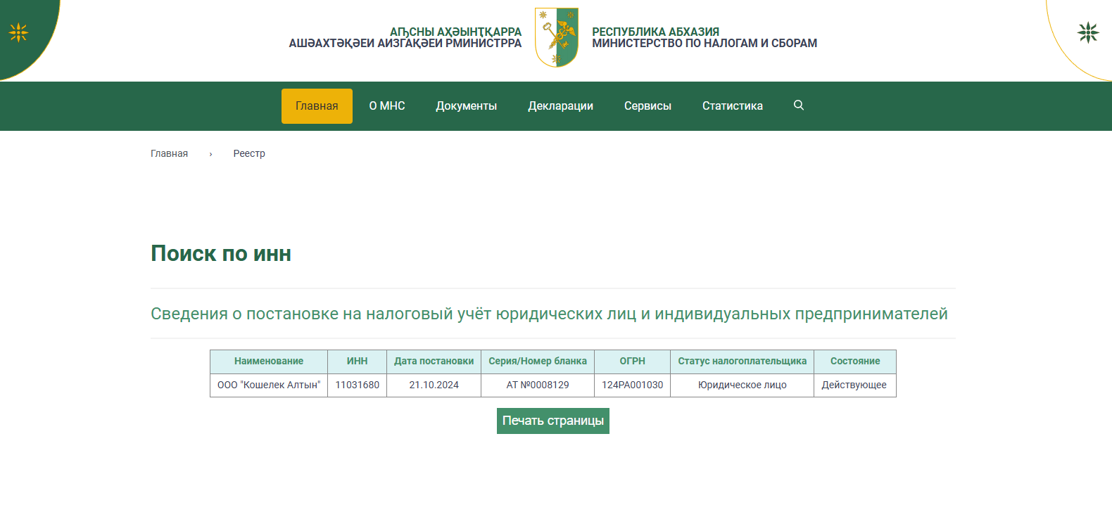 ООО Кошелек Алтын – компания, которая была зарегистрирована в конце 2024 года в Абхазии. Об этом есть соответствующая запись на сайте регулятора: