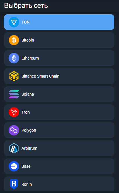 AstraWallet работает с 11 блокчейнами, в числе которых TON, Bitcoin, Ethereum, Solana и другие. Расширенный список представлен на скриншоте ниже: