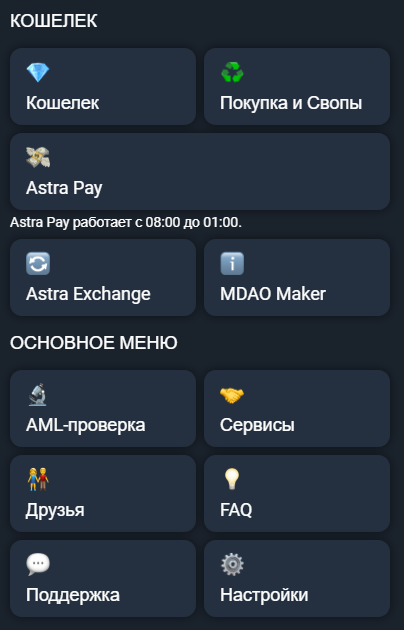 Astra Exchange и MADO Maker являются скорее отдельными сервисами, поэтому вполне вероятен вариант, при котором эти функции в какой-то момент просто исчезнут из «Астра Воллет». Первый раздел нужен для обмена крипты на другие активы и фиат, а также оплаты счетов. Второй находится в отдельном мини-аппе, где можно найти информацию о запускающихся проектах и получить награды за участие в них.