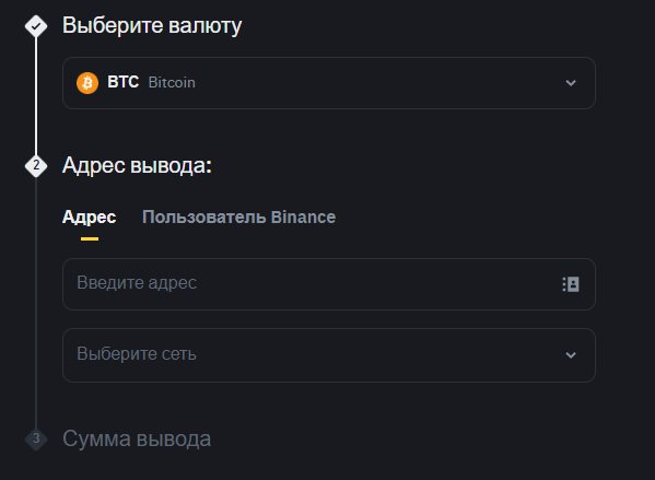 Клиенту нужно будет ввести номер кошелька пользователя, блокчейн-сеть и отправить финансовые средства.