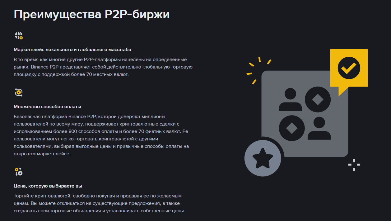 У пользователей есть возможность покупать крипту за фиатную валюту. Эту процедуру можно выполнить через P2P-торговлю в одноименном разделе, либо пополнить через банковские карты платежных систем Visa и MasterCard.