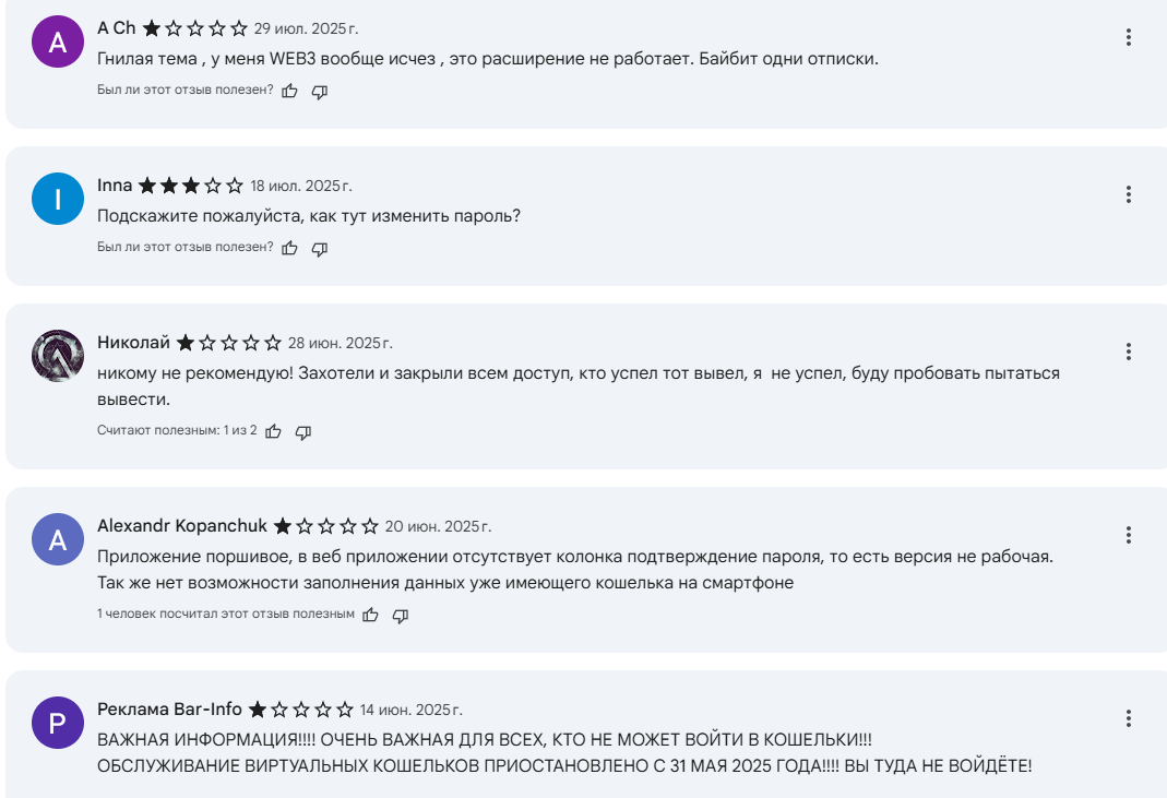 С другой стороны, не всех может устроить обязательная верификация, а вся надежность ставится под сомнение известными случаями взлома Bybit Wallet, упомянутыми в обзоре, и соответствующими отзывами о критокошельке, написанными после этого.
