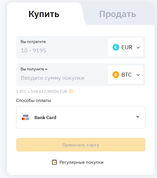 Обладатели европейской банковской карты могут использовать для пополнения евро, нажав на «Депозит в фиатной валюте». Российским трейдерам такой метод не подойдет из-за санкционных ограничений.