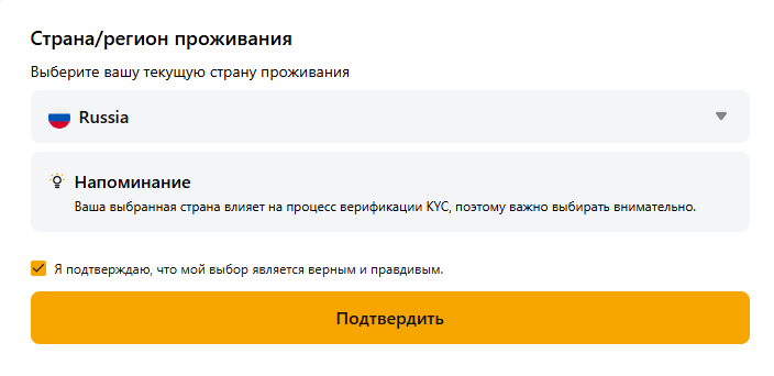 Аккаунт создается и без прохождения KYC, однако до предоставления документов пополнить баланс не получится. Завершение верификации необходимо, ее можно пройти с помощью паспорта, в том числе российского, и селфи с ним. Само окно KYC можно открыть через раздел «Аккаунт».