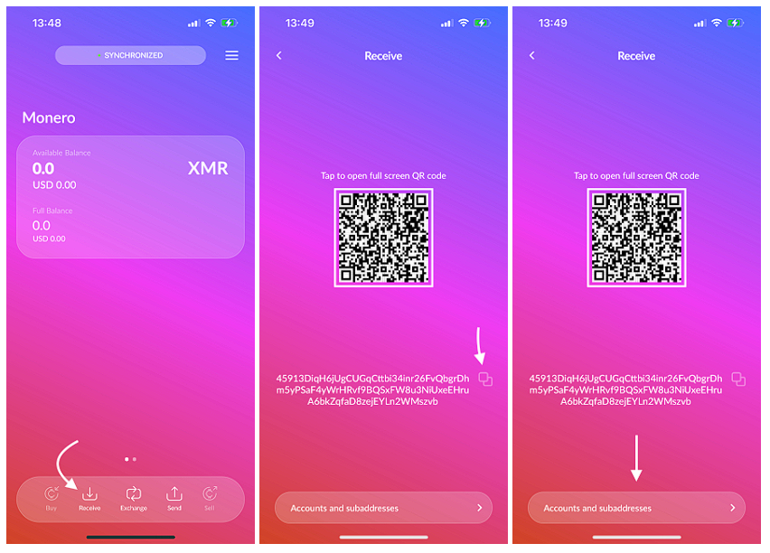 При покупке укажите адрес своего кошелька из Cake Wallet. Криптовалюта поступит туда напрямую. Обязательно проверяйте комиссию и актуальный курс при оплате.