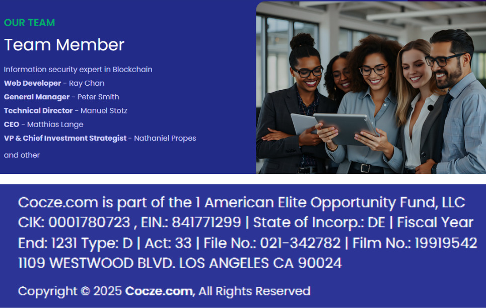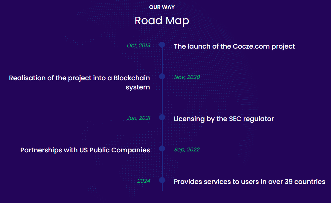 Компания Cocze Com USA рассказывает о своем профессиональном пути, который начался еще в 2019 году. С момента создания проект непрерывно развивался и сейчас кошелек якобы доступен жителям 39 стран.