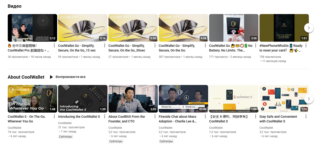 У авторов проекта имеется ютуб-канал CoolWallet. На август 2025 года на него подписан 2001 человек. Выложено всего 45 постов с видеороликами об обновлениях кошелька, информацией о том, как создавался сервис от команды создателей. На ютуб-канале есть базовые инструкции по взаимодействию с приложением.