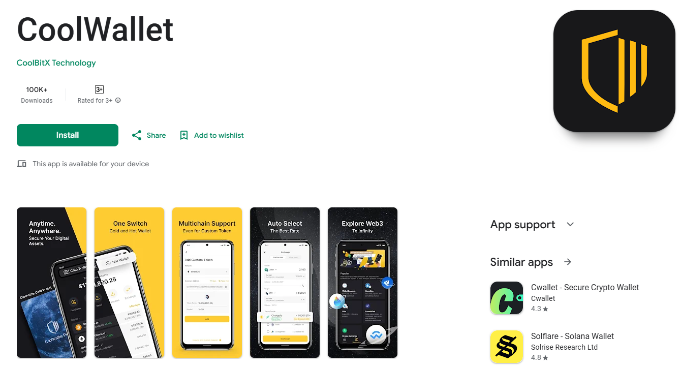 - CoolWallet S относится к стандартному типу девайсов и поддерживает 10 000 токенов и 14 блокчейнов.
