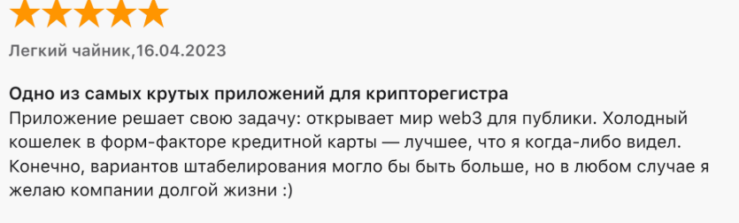 В положительных отзывах о CoolWallet один из клиентов называет кошелек самым крутым приложением. Он уверен в том, что девайс открывает мир Web3 широкой публике.