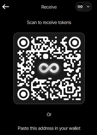 Для внесения депозита нажимаем на Receive: откроется экран с QR-кодом, а также адрес, который можно скопировать и вставить в кошельке-отправителе или на бирже. Далее совершаем перевод со стороннего сервиса и после подтверждения блокчейном деньги должны появиться на балансе.
