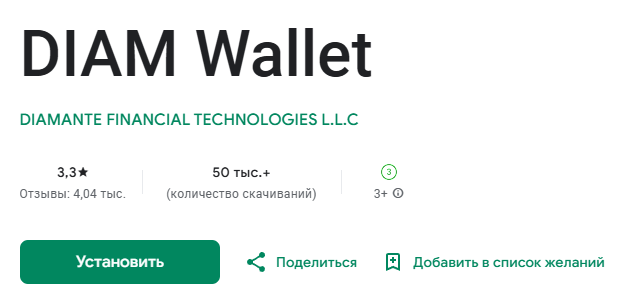Кошелек для крипты Diam Wallet можно установить на Android и на iOS из официальных маркетов, где он свободно доступен. Однако есть одна важная особенность: в App Store найти приложение пользователям из российского региона не получится. Его распространение в РФ ограничено.