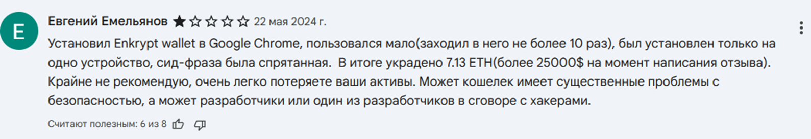 В работе кошелька Enkrypt Eth Btc And Solana Wallet признаков мошенничества не выявлено. Приложение работает, обеспечивает хранение и движение крипты. Но есть ряд минусов, на которые нужно обязательно обратить внимание: