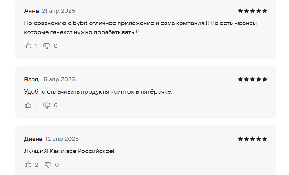 В Сети пока не сильно много обсуждают данный кошелек, но отзывы о Genex Wallet по большей части положительные. Довольные клиенты отмечают простоту сервиса и удобство оплаты криптой за продукты в супермаркетах.