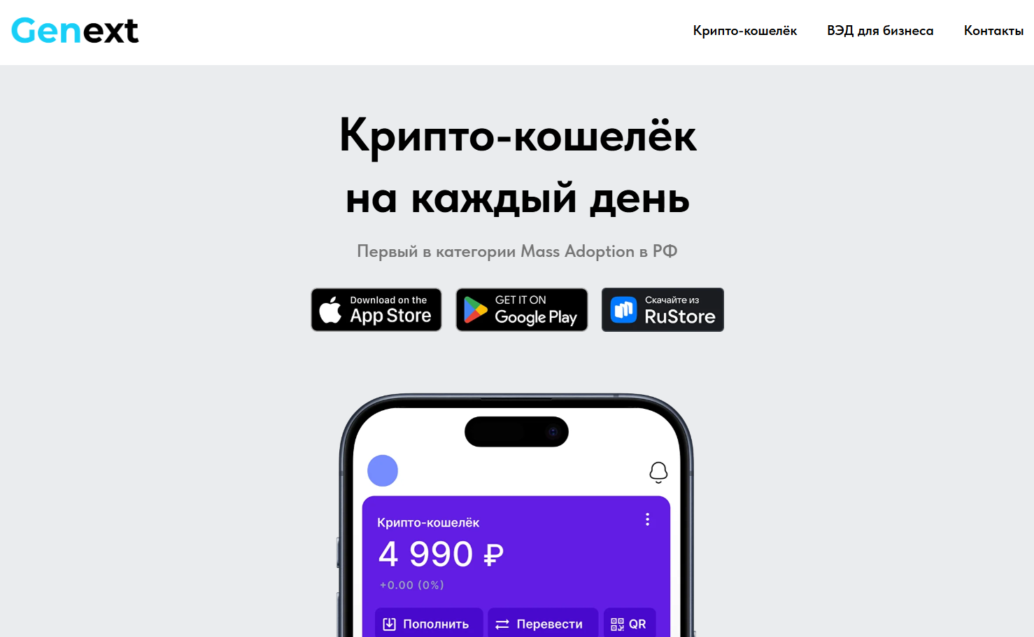 На официальном сайте genext-pay com пользователей сразу встречает позиционирование проекта – «Крипто-кошелек на каждый день». Владельцы делают акцент на простоте и легкости интеграции в обычную повседневную жизнь.