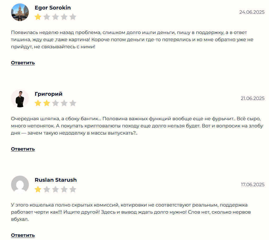 В целом пользователи не понимают, почему полноценно не доделанный кошелек выпустили в массы и начали продвигать, если на нем еще даже не работает функция покупки криптовалюты за фиат.