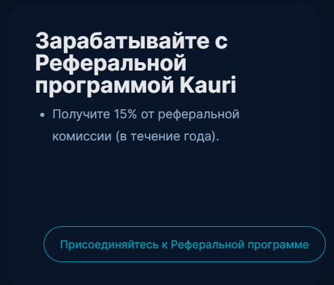 На официальном сайте kaurifinance есть упоминание о реферальной программе, доступной для клиентов и владельцев кошелька Kauri.