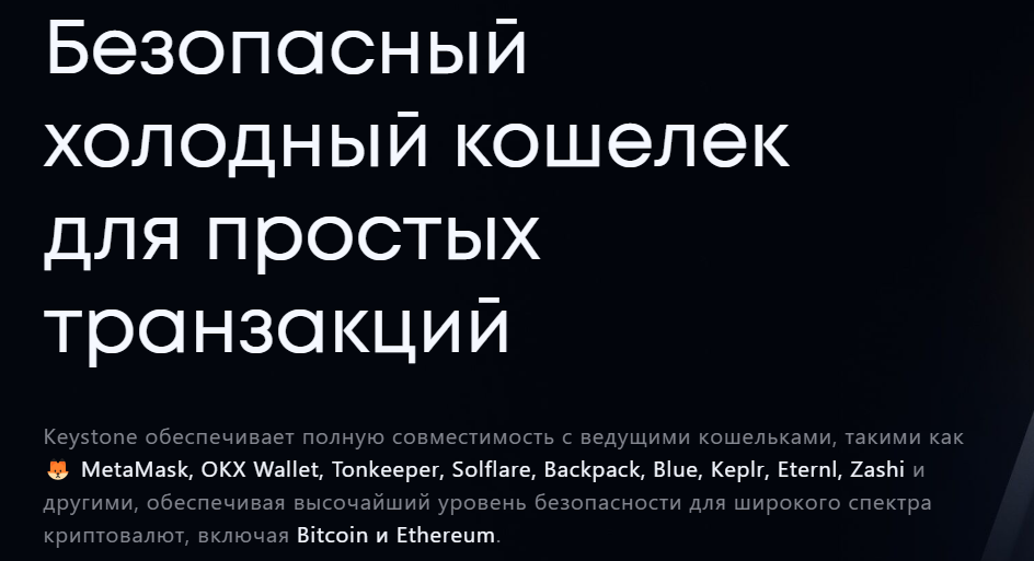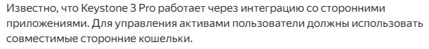 Keystone относится к категории холодных кошельков с технологией «Air-gapped», исключающей подключение к интернету, Bluetooth или USB, что минимизирует риски хакерских атак. Основные операции включают хранение, отправку и получение средств, но встроенные функции стейкинга или свопов отсутствуют. Для расширенного функционала Key Stone 3 Pro требуются сторонние приложения, такие как MetaMask или Electrum. Устройство поддерживает работу на iOS, Android, Windows, macOS и Linux.