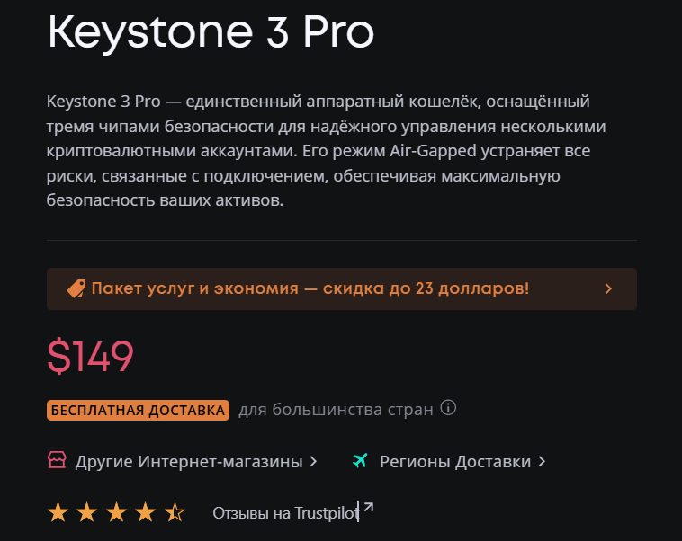 Мы рассмотрели Keystone 3 Pro, проанализировали безопасность и уровень комиссий, а также изучили особенности данного кошелька. Подводя итог обзора, делаем следующие выводы: