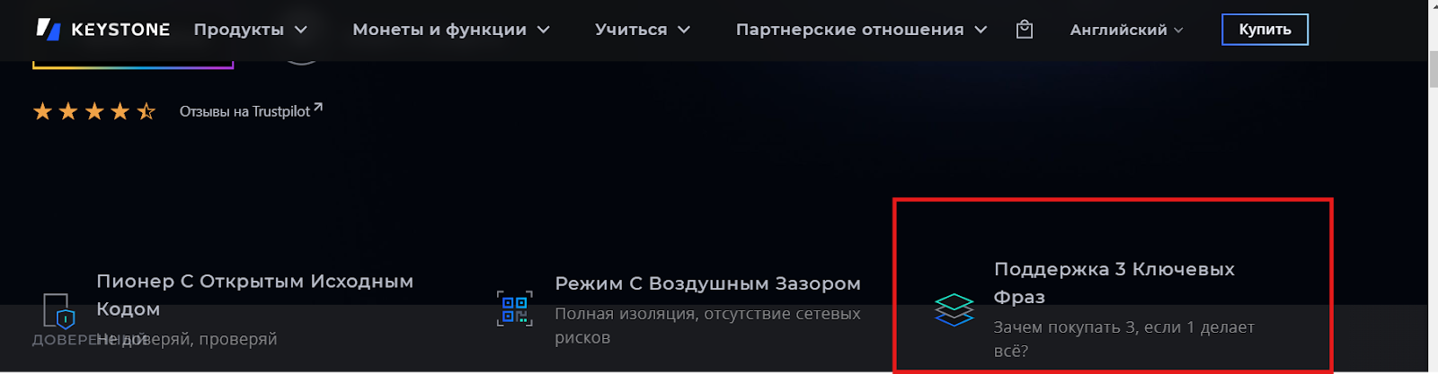 Уникальной функцией «Кейстон 3 Про» считается поддержка трех независимых seed-фраз на одном устройстве. Каждая из них защищена отдельным PIN-кодом или биометрией, что упрощает управление мультиаккаунтами.