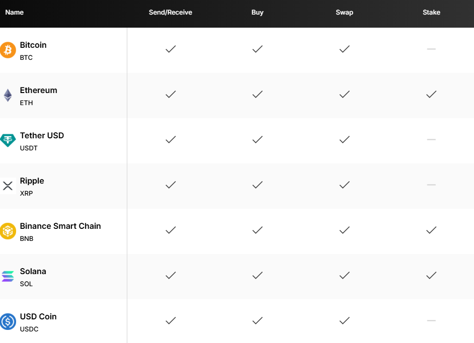 Девайс совместим с более чем 50 воллетами для доступа к DApps, различным активам и приложениям Web3. Устройство поддерживает свыше 5,5 тысяч криптовалют на разных блокчейнах.