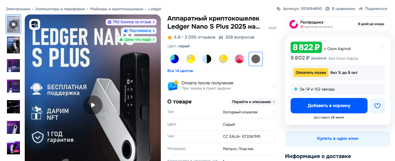 Однако мы рекомендуем приобретать аппаратные кошельки только у официальных продавцов. В истории криптовалют встречались случаи взлома кошельков при покупке у неофициальных реселлеров или у сторонних сервисов, что приводило к потере средств.