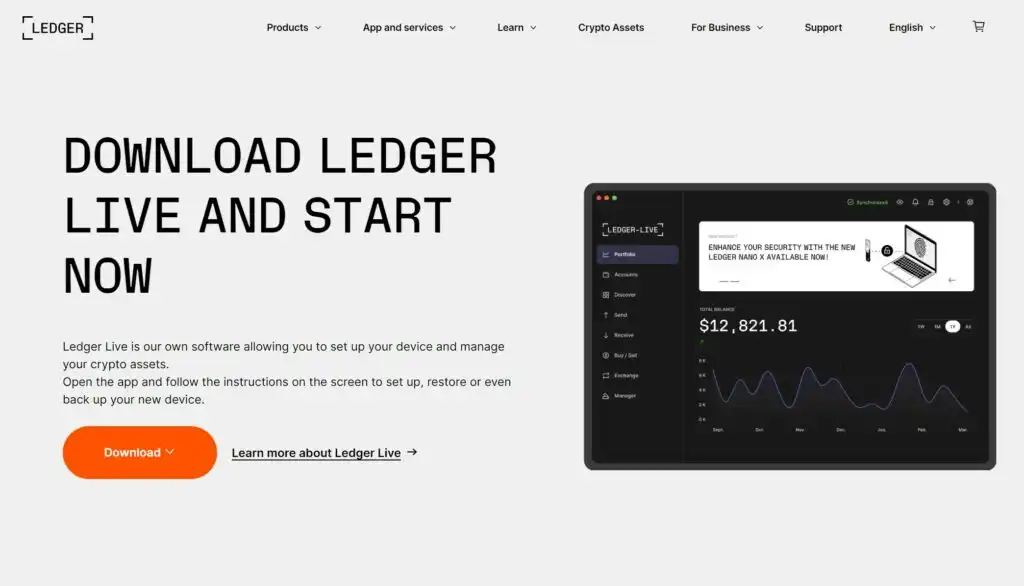 Начать использование аппаратного кошелька необходимо с загрузки приложения Ledger Live, которое нужно скачать на сайте компании-разработчика. После установки и запуска можете подключать свой девайс. Пользователей встречают приветственной презентацией, в которой рассказывают об основных возможностях и функциях устройства.