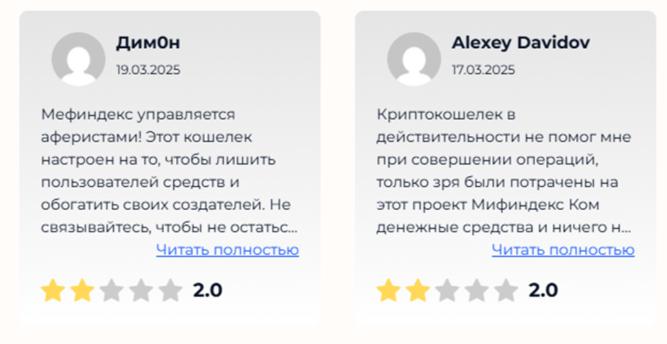 Эксперты тоже указывают в своих обзорах на то, что платформа MefIndex отличается низкой надежностью. Они говорят, что кошелек является фальшивым, а все документы – фейковыми. Отсутствие положительных комментариев от клиентов ресурса не позволяет нам говорить о хорошей репутации данного проекта. К тому же многие специалисты считают этот сервис опасным, особенно для новичков.