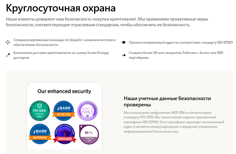 Особенность сервиса как валлета в том, что пользователям предоставляется полный контроль над валютой и личными ключами, которые есть только у владельцев. Эти гарантии безопасности повышают защиту от кражи криптовалюты со счета Moon Pay и несанкционированного доступа к аккаунту. Для защиты самих транзакций используются передовые технологии шифрования блокчейна.