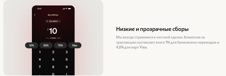 • простое инвестирование средств в криптовалюту и NFT, ведь весь процесс на платформе занимает несколько минут, и это преимущество команда особенно выделяет для пользователей кошелька;
