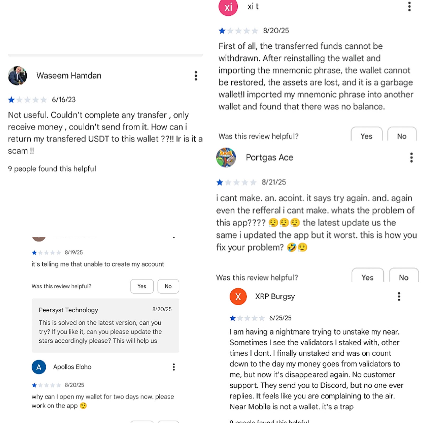 Есть негативные комментарии, в которых пишут, что невозможно отправить средства на кошелек. Клиенты теряют активы после переустановки кошелька и сообщают про некачественное обновление эппа.