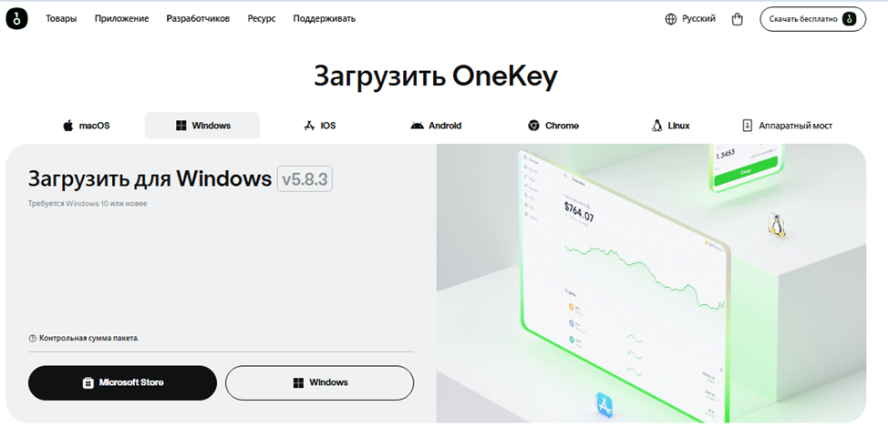Владельцам смартфонов и планшетов на Android предлагают альтернативный вариант. Они могут установить кошелек One Key из APK-файла. Установочный пакет доступен для скачивания в разделе Downloads на официальном сайте OneKey So.