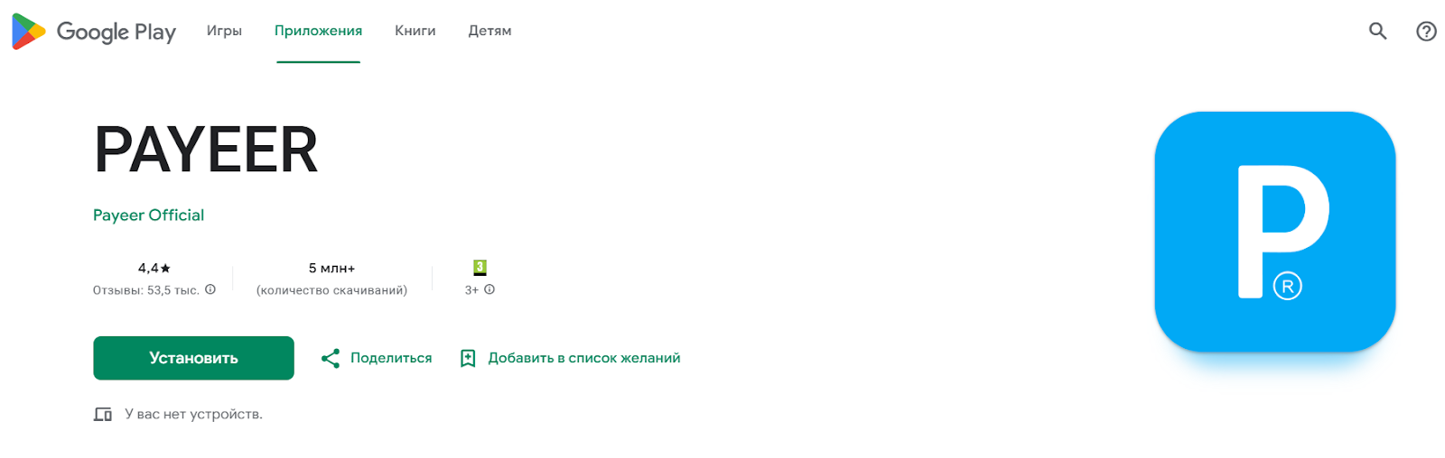 Отзывы пользователей об электронном кошельке Payeer на русском языке начнем изучать с магазинов приложений. Например, в Google Play он имеет 4,4 звезды рейтинга, а количество скачиваний более 5 млн.