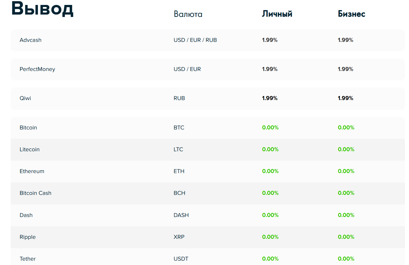 - AdvCash в USD, EUR, RUB – 1,99%.