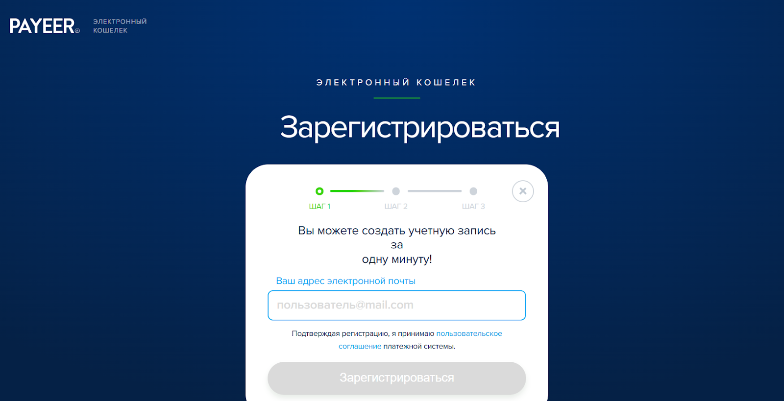 Сама регистрация здесь простая и включает 3 шага – покажем ее на примере веб-версии: