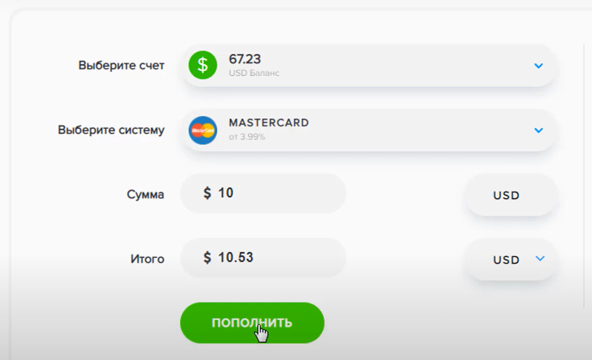 - Для банковских карт в USD и EUR: VISA, MasterCard – от 3,99%.