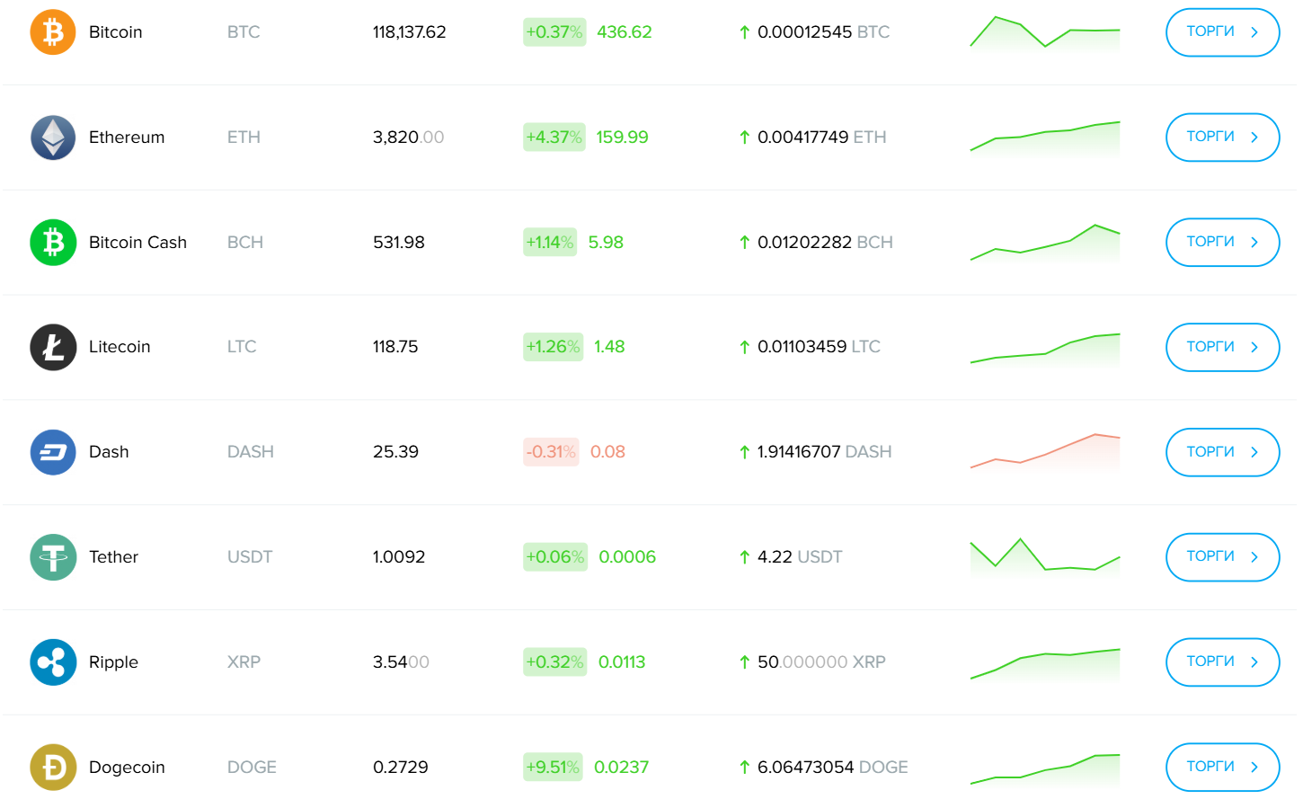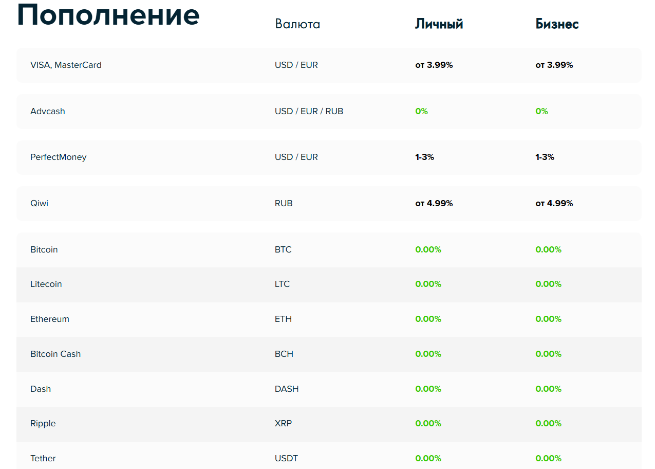 Это мультивалютный онлайн-кошелек и обменник, где все поддерживается через удобный интерфейс. В таблице ниже основное, что здесь есть по крипте.