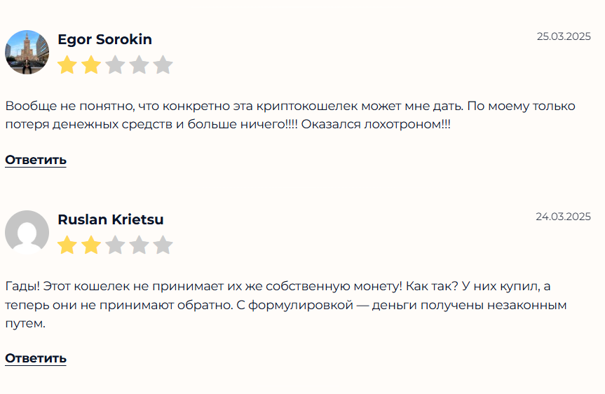 Ни одного положительного отзыва о работе криптовалютного кошелька в Сети нет, также как и в комментариях на страницах социальных сетей нет мнений от довольных сервисом подписчиков. Никто не называл сервис удобным и безопасным в использовании.