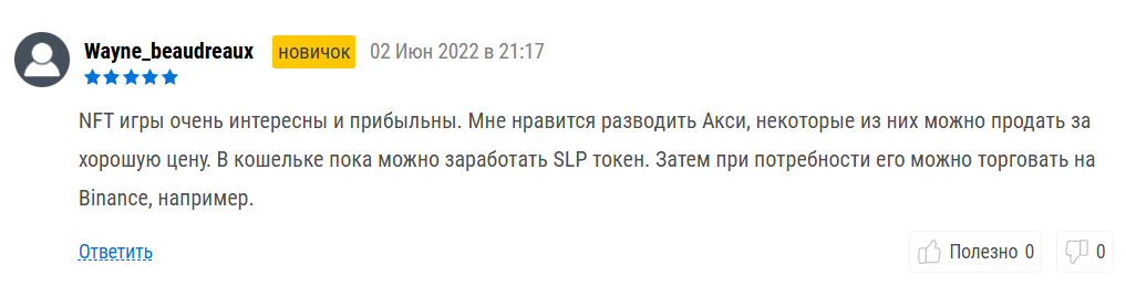 Владельцы кошелька Ronin Wallet находят различные применения кошельку помимо обмена игровой крипты. Еще один из клиентов говорит, что будет использовать этот профиль для ввода и вывода валюты при трейдинге на Binance токеном SLP.