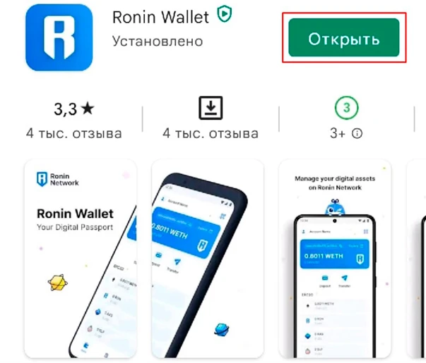 Для выполнения первого варианта найдите «Ronin Wallet» в поиске, убедитесь, что разработчик указан как «Sky Mavis Pte. Ltd.» или «Sky Mavis», и нажмите «Установить». После завершения инсталляции ярлык появится на домашнем экране или в меню приложений.