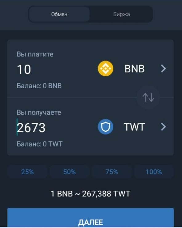 - Выберите тикер монеты и пропишите сумму, которая вам нужна.