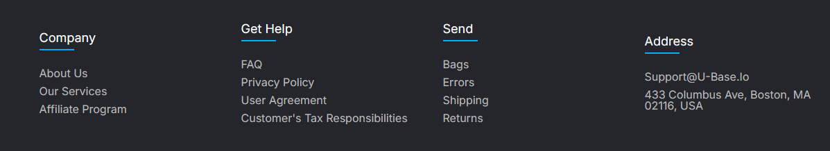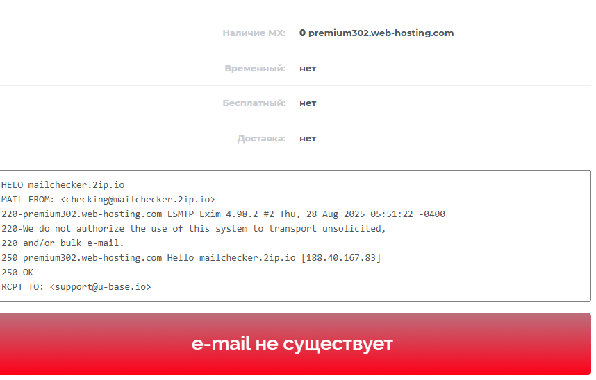 Более того, единственный способ связи, представленный на сайте – email support u base io является несуществующим: