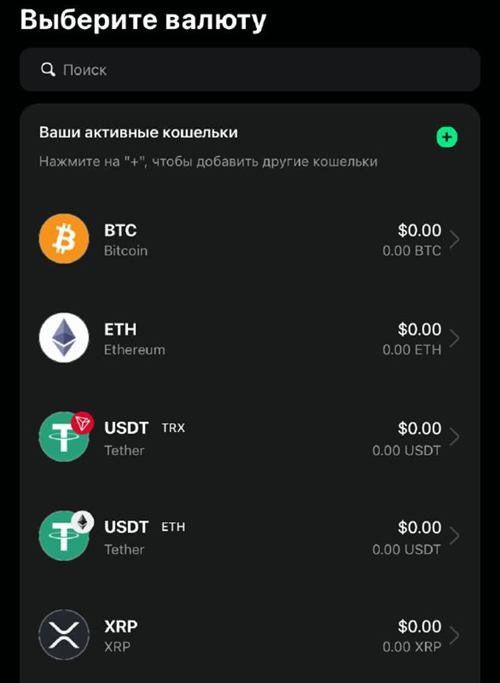 Сервис поддерживает пополнение через другие кошельки и биржи. Для внесения средств на баланс нужно: