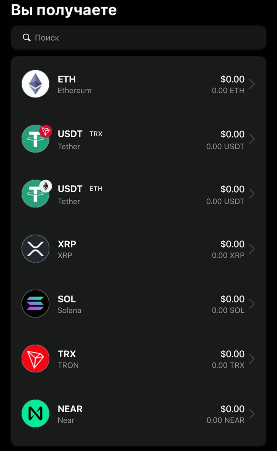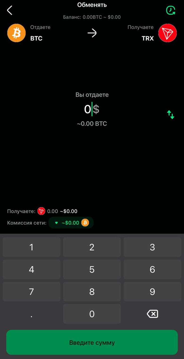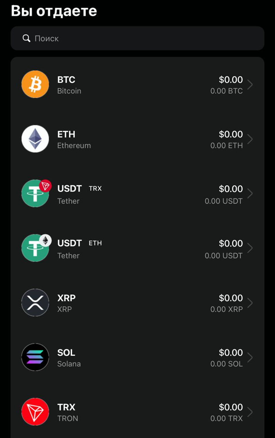 Внутри площадки доступны прямые переводы между счетами. Для пользователей встроен агрегатор, который помогает совершать обмен, конвертируя один вид активов в другой. Для обмена средств требуется: