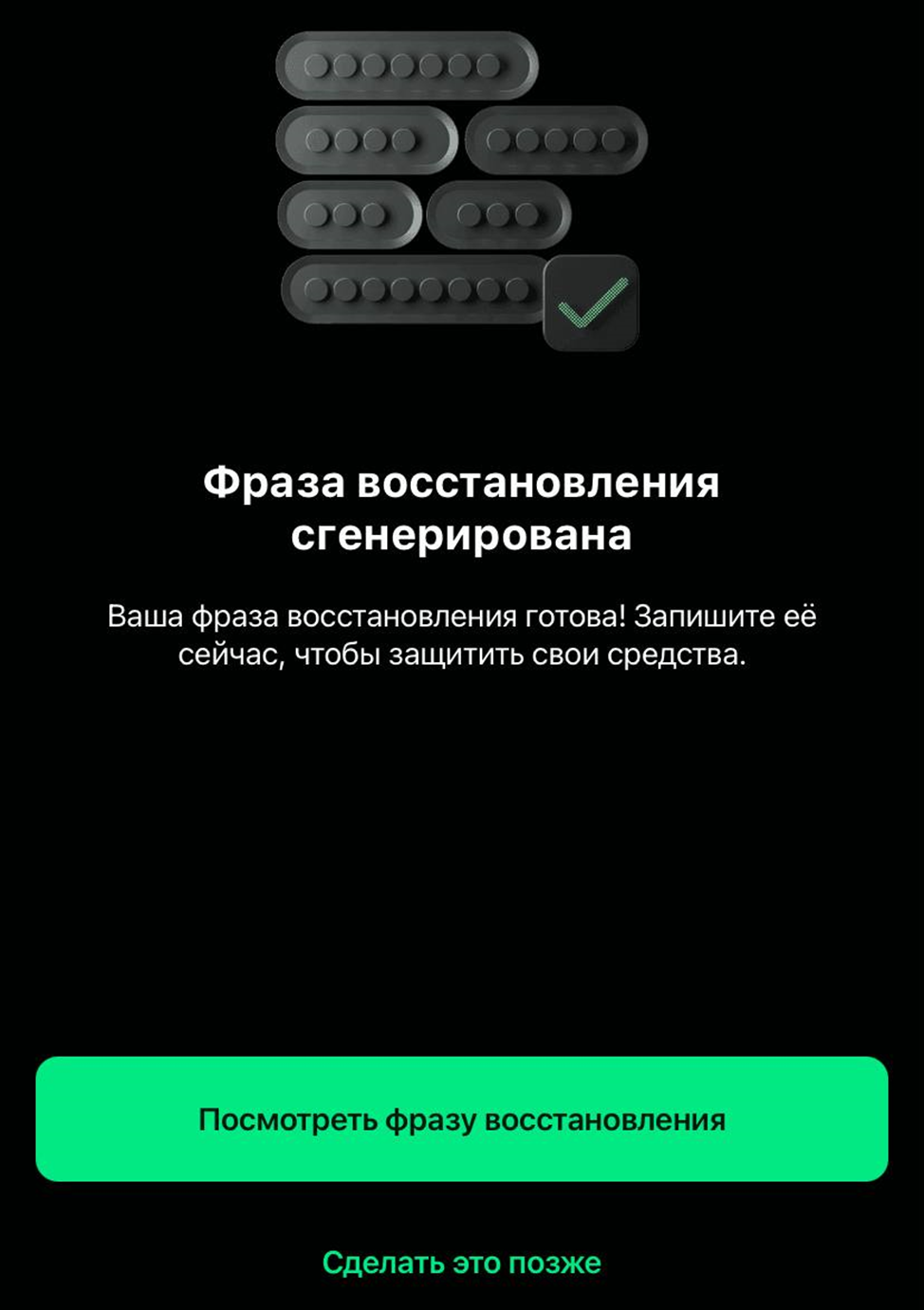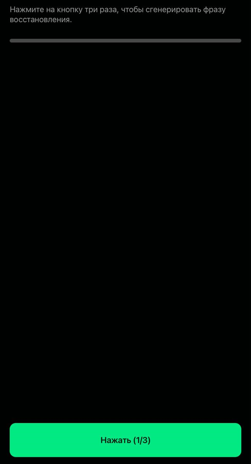 • Трижды кликнуть на кнопку для генерации сид-фразы.