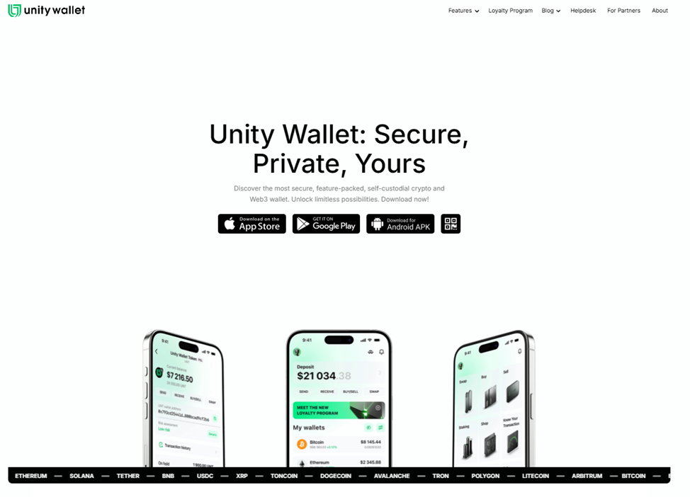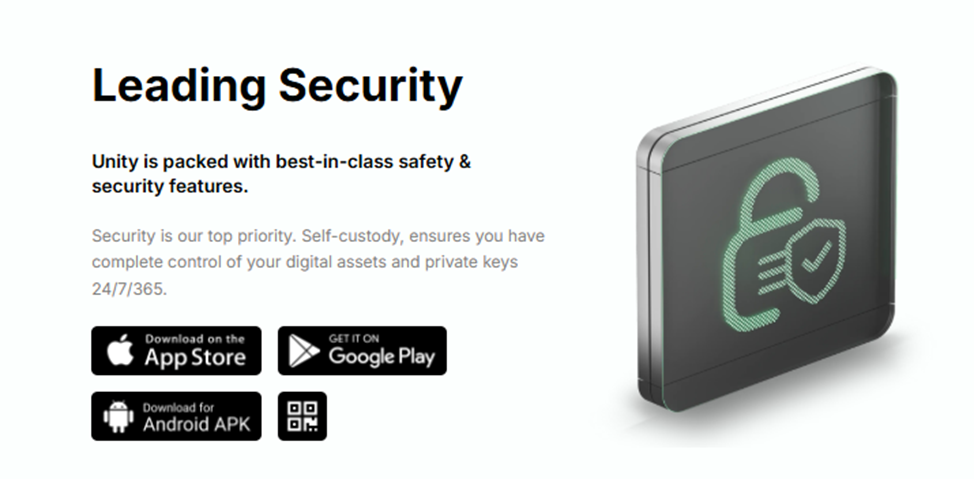 Сервис относится к категории горячих кошельков, которые в отличие от холодных аналогов, подключены к интернету постоянно. Это обеспечивает высокую скорость операций, но заставляет клиентов переживать из-за вопросов безопасности. Само хранилище UnityWallet некастодиальное, поэтому разработчики предоставляют клиентам доступ к секретным ключам и фразам.