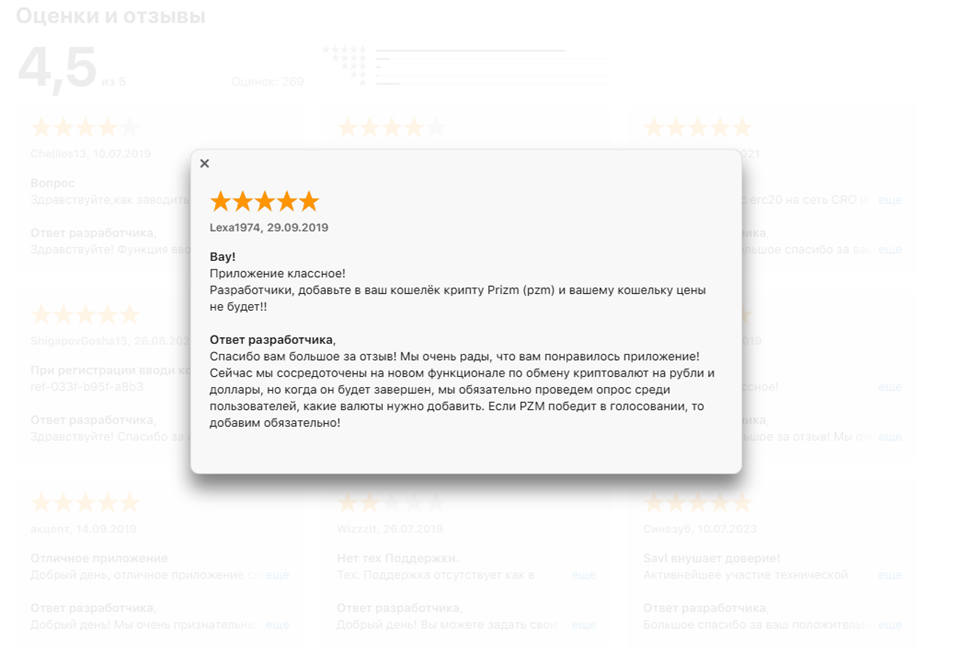 В Сети о данном криптовалютном кошельке говорят в основном в положительном ключе. Проекту ставят от 4 до 5 звезд за удобство, скорость и качественную работу технической поддержки. Часто пользователи просят разработчиков Unity Wallet в отзывах внедрить новые функции, на что команда быстро отвечает, обещая предложить в скором времени дополнения и обновления.
