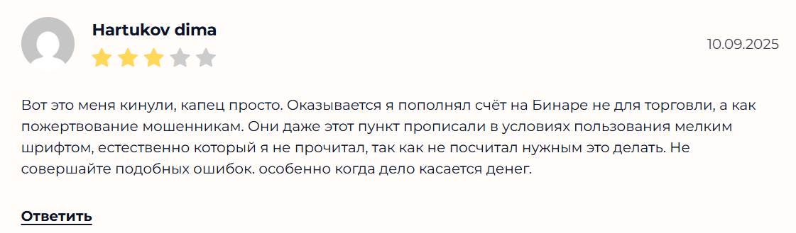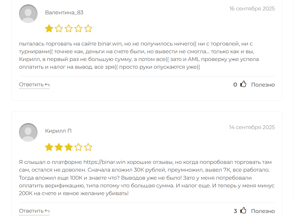 - Отзывы о Binar Win только негативные – значит клиенты серьезно рискуют в случае торговли на бирже.