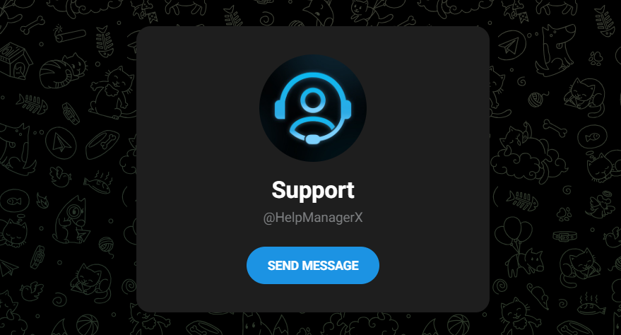 Помимо прочего, в личном кабинете «Бинар Вин» уже есть контакты службы техподдержки, представленный анонимным аккаунтом в Телеграмм HelpManagerX. Время работы менеджера не озвучено.
