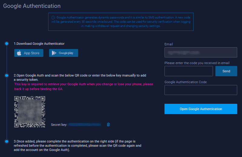В разделе Security у пользователей была возможность подключить Google Authentication, следуя инструкциям на сайте. В самом процессе нет ничего сложного: достаточно установить приложение Google Authenticator на телефон, войти в аккаунт и отсканировать QR-код. После этого при входе в аккаунт необходимо вводить дополнительные цифры, что затрудняло взлом личного кабинета.