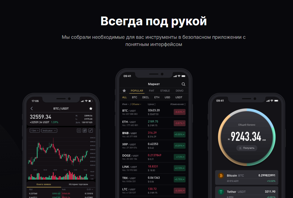 • пользователям доступен стейкинг, криптодепозиты, спотовый рынок, фьючерсы и другие способы заработка;